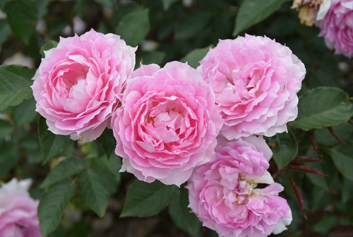 寶珠型花瓣,中輪花朵成簇綻放。散發大馬士革和辛香的強香。和雪拉莎徳相同,除了飽滿的枝條外,易開出單花。